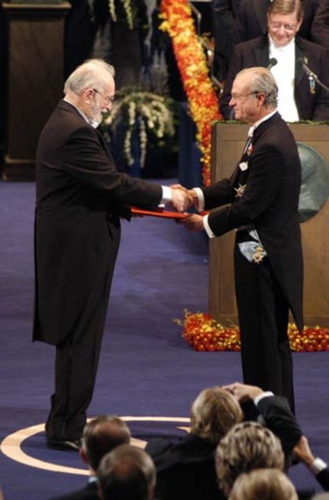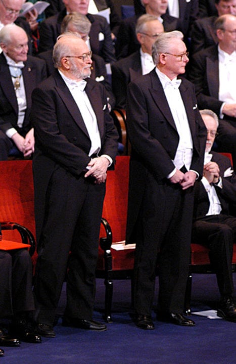 Paul C. Lauterbur and Sir Peter Mansfield at the Nobel Prize Award Ceremony at the Stockholm Concert Hall, 10 December 2003.