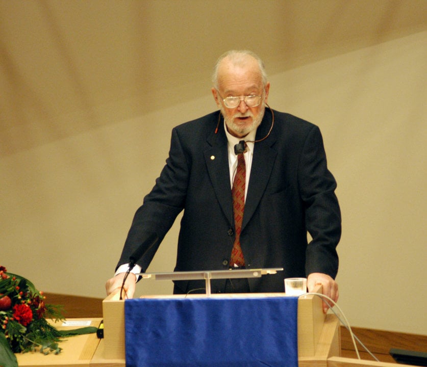 Paul C. Lauterbur delivering his Nobel Lecture at Berzeliuslaboratoriet