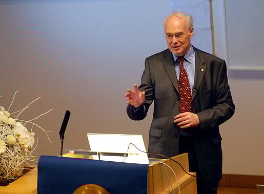 Sir Martin J. Evans delivering his Nobel Lecture at Karolinska Institutet in Stockholm, 7 December 2007.