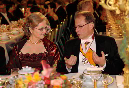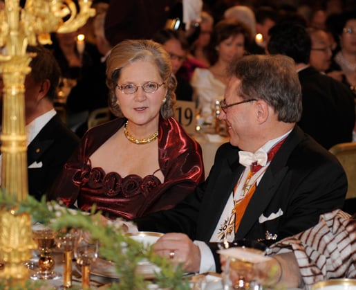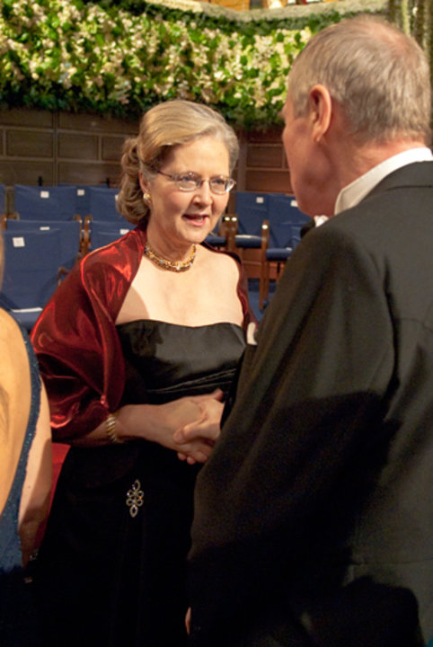 Elizabeth H. Blackburn in conversation with Mr Per Westerberg, Speaker of the Swedish Parliament, at the Nobel Banquet in the Stockholm City Hall, 10 December 2009.
