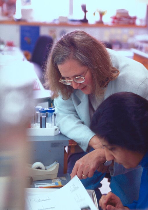 24 (of 31) Elizabeth Blackburn with a student in her lab at the University of California, San Francisco.