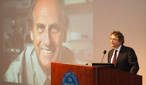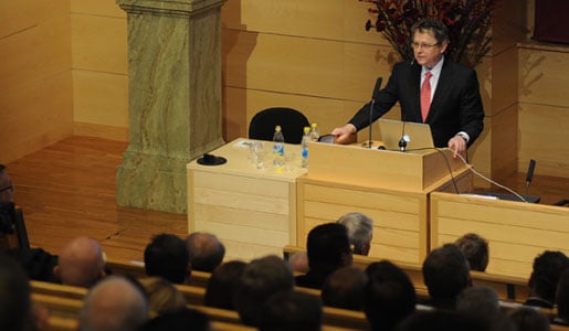 Michel C. Nussenzweig delivering a Nobel Lecture on behalf of the late Ralph M. Steinman in the Jacob Berzelius Lecture Hall at Karolinska Institutet, 7 December 2011.