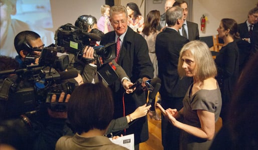 12 (of 14) Ralph M. Steinman's wife, Claudia Steinman, speaks with reporters after the announcement of the 2011 Nobel Prize in Physiology or Medicine.
