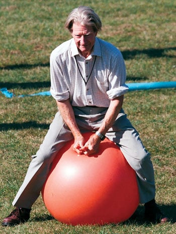 23 (of 24) Sir John B. Gurdon on a kangaroo ball, investigating what it actually does feel like to be a frog.