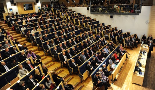 4 (of 24) A bird's eye picture of the Nobel Prize Award Ceremony in the Stockholm Concert Hall on 10 December 2012.