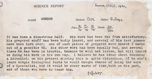 19 (of 24) Sir John B. Gurdon's science report card from Eton College, 1949.