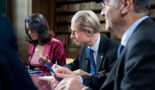 Recording of the TV-program 'Nobel Minds', hosted by Zeinab Badawi, BBC World News, in the Bernadotte Library at the Royal Palace, 7 December 2012.