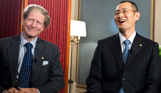 Sir John B. Gurdon (left) and Shinya Yamanaka (right) during their interview with Nobelprize.org on 6 December 2012.