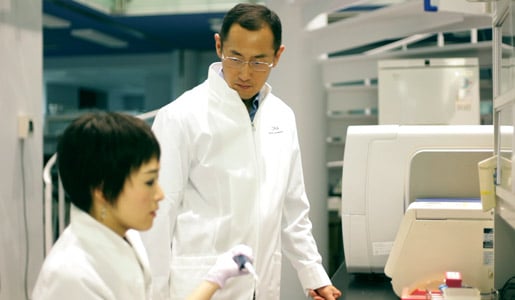 19 (of 21) Shinya Yamanaka guiding technical staff at the Open Lab at 4th floor of the CiRA building, Kyoto, in September 2011.