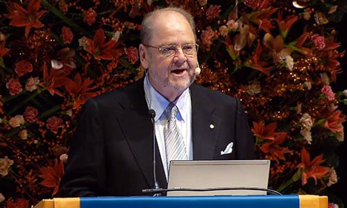 12 (of 19) James E. Rothman delivering his Nobel Lecture The Principle of Membrane Fusion in the Cell in the Aula Medica at Karolinska Institutet, 7 December 2013.