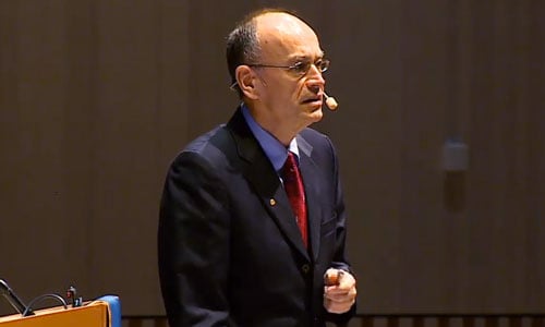 13 (of 16) Thomas C. Südhof delivering his Nobel Lecture A Molecular Machine for Neurotransmitter Release in the Aula Medica at Karolinska Institutet, 7 December 2013.