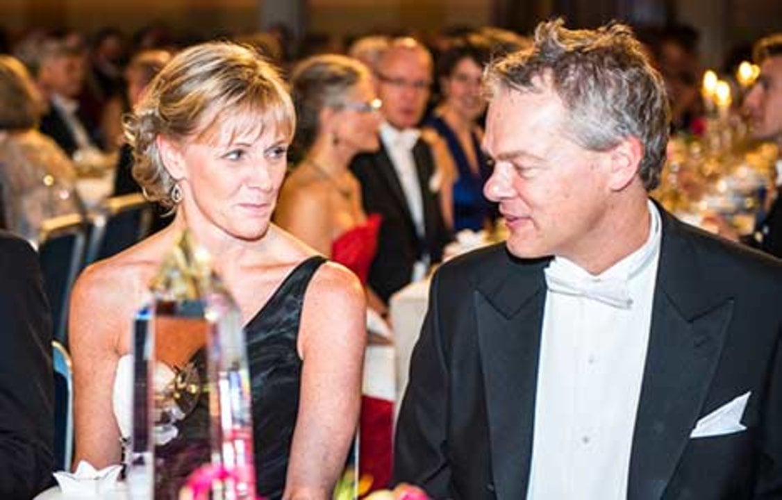 May-Britt and Edvard I. Moser on stag eafter the Nobel Prize Award Ceremony at the Stockholm Concert Hall.