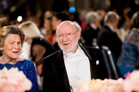 William C. Campbell beside his wife, Mrs Mary Campbell, at the table of honour of the Nobel Banquet.