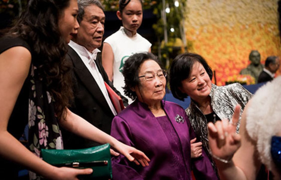 Tu Youyou with relatives after the Nobel Prize Award Ceremony.
