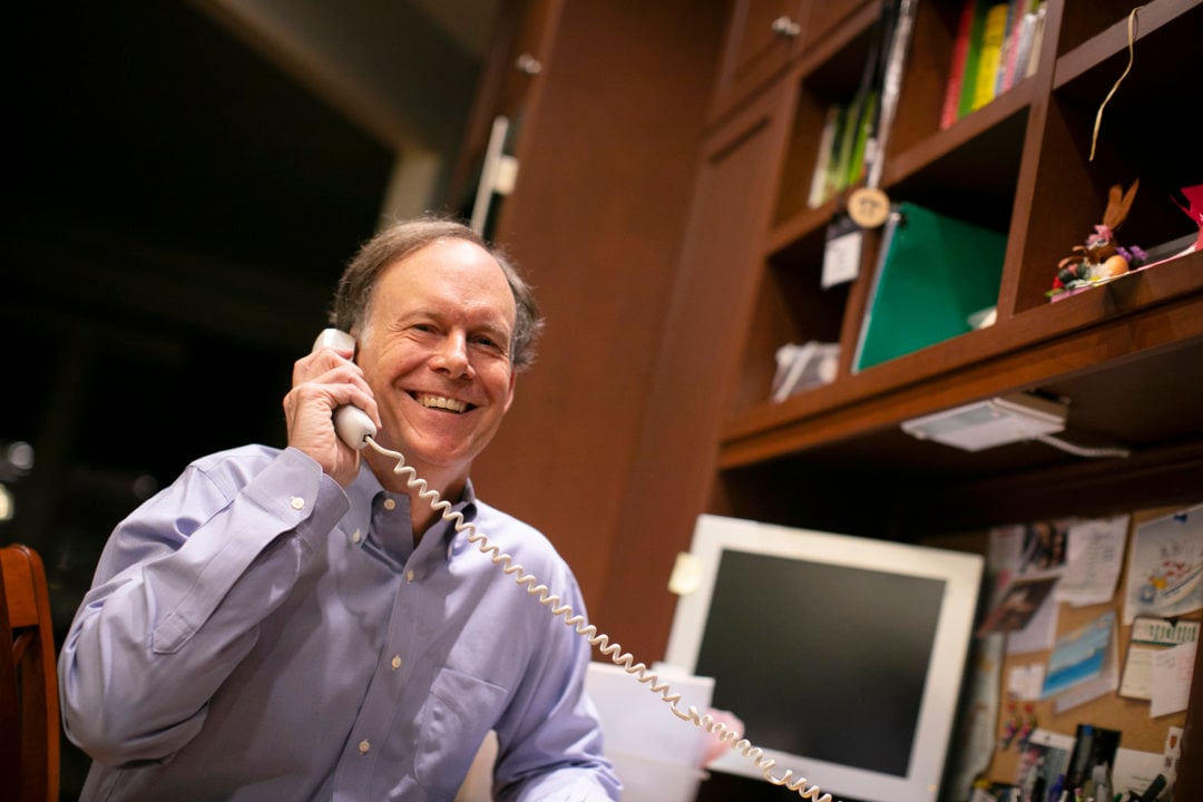6 (of 9) William G. Kaelin Jr in his home in Boston shortly after receiving the call from Sweden about being awarded the Nobel Prize, 7 October 2019.