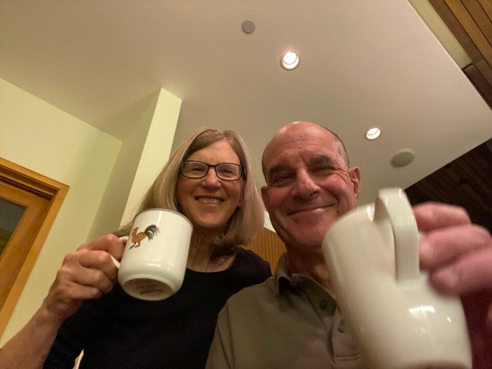 10 (of 14) David Julius with his wife Holly Ingraham celebrating with coffee after the news of being awarded the medicine prize, 4 October 2001.