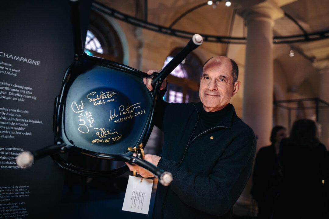 8 (of 14) Like many laureates before him, David Julius signed a chair at the Nobel Prize laureates' Get together at the Nobel Prize Museum.