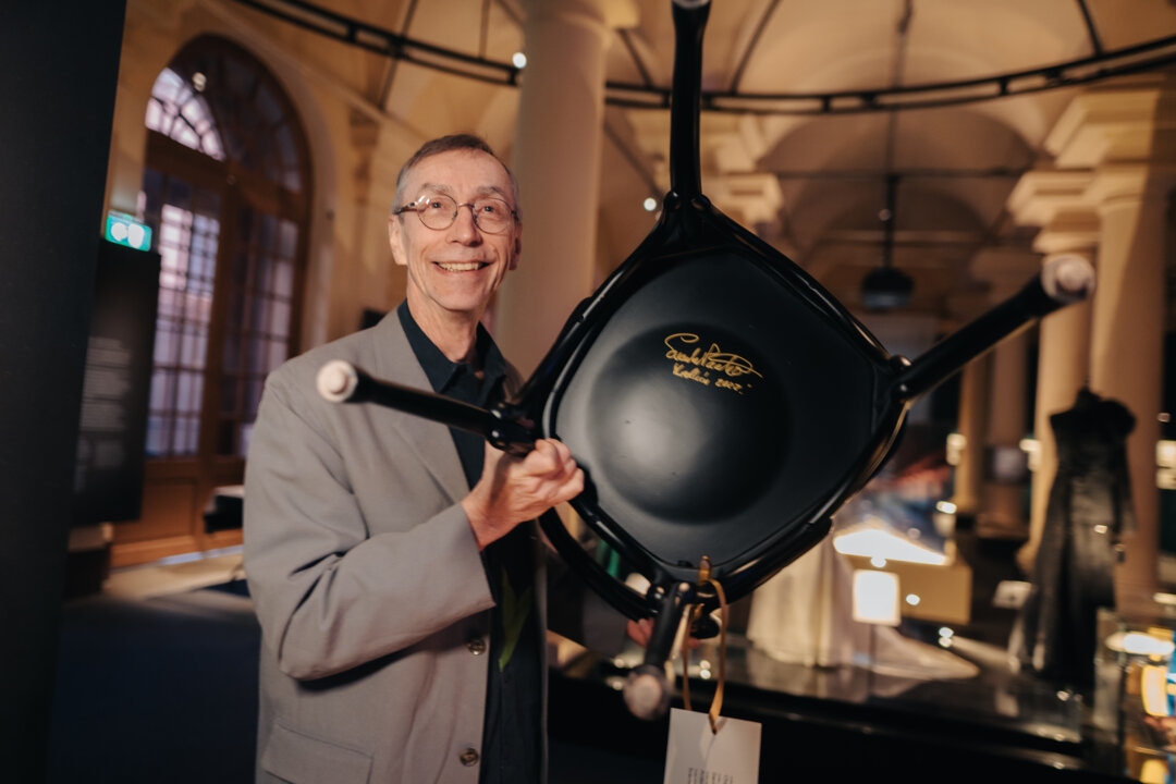 14 (of 18) Like many laureates before him, Svante Pääbo signed a chair at the Nobel Prize laureates' Get together at the Nobel Prize Museum in Stockholm on 6 December 2022.