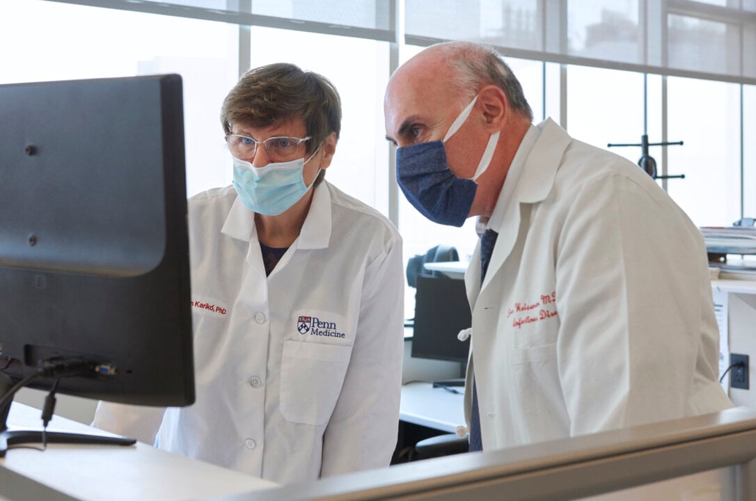 18 (of 18) Katalin Karikó and Drew Weissman working together at Penn Medicine, 2020.