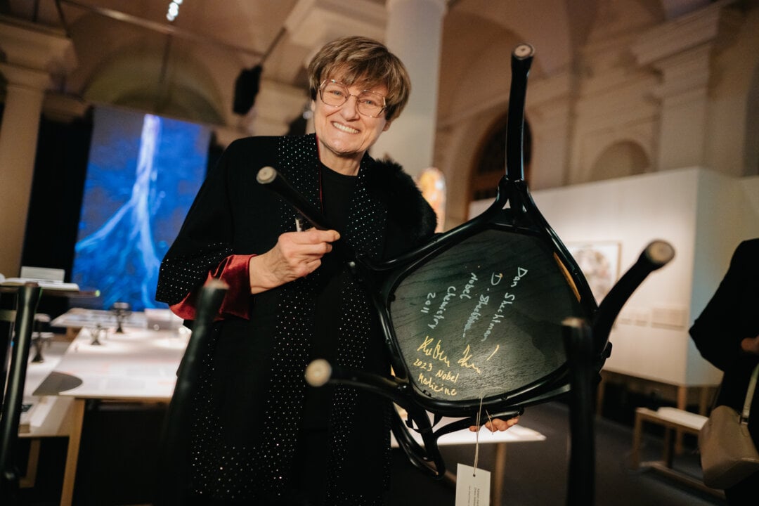 11 (of 18) Like many laureates before her, Katalin Karikó signed a chair at the laureates' Get together at the Nobel Prize Museum in Stockholm on 6 December 2023.