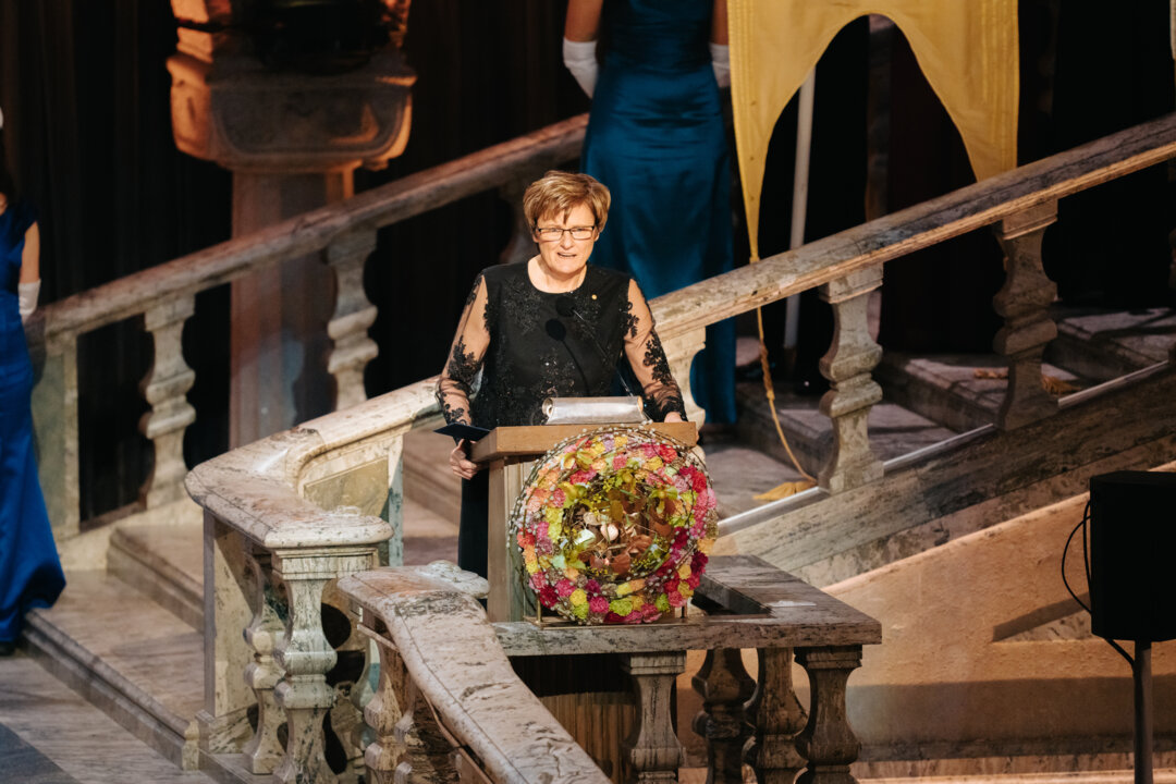 6 (of 18) Katalin Karikó delivering her speech of thanks at the Nobel Prize banquet in the Stockholm City Hall, 10 December 2023.