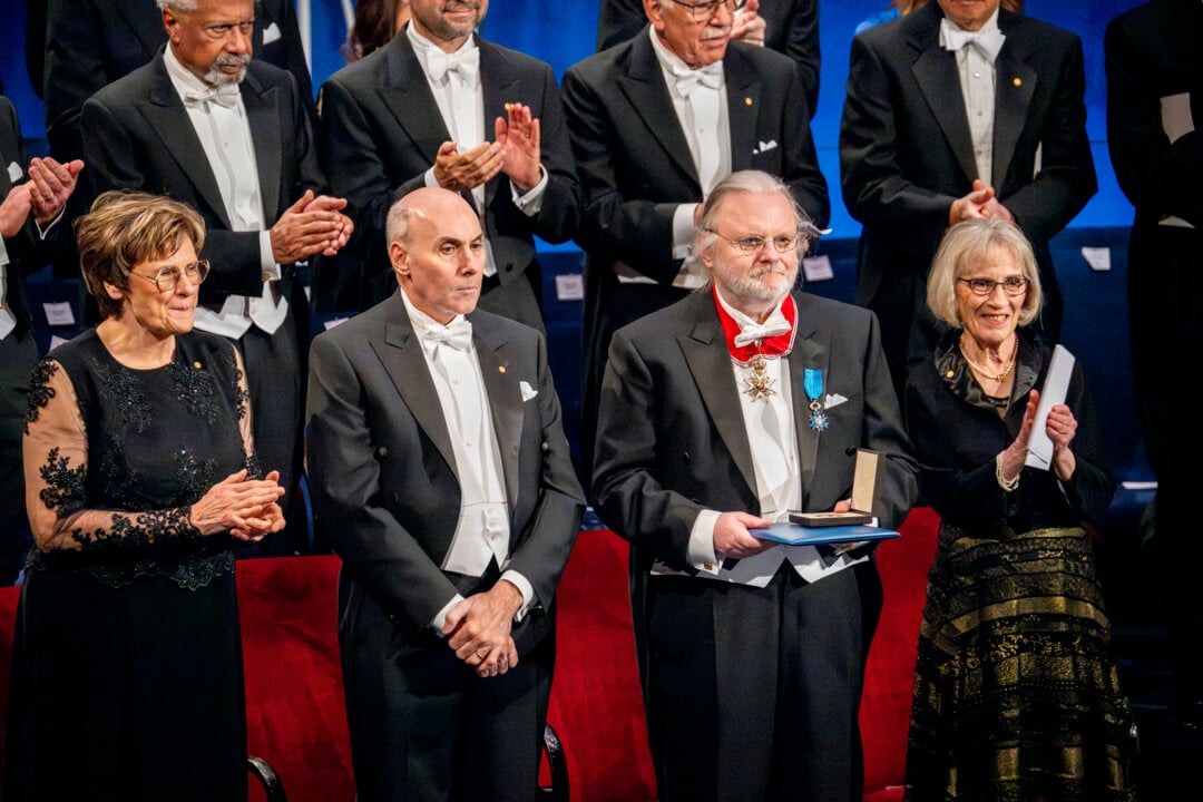 3 (of 18) Medicine laureates Katalin Karikó and Drew Weissman, literature laureate Jon Fosse and economic sciences laureate Claudia Goldin at the Nobel Prize award ceremony, 10 December 2023.