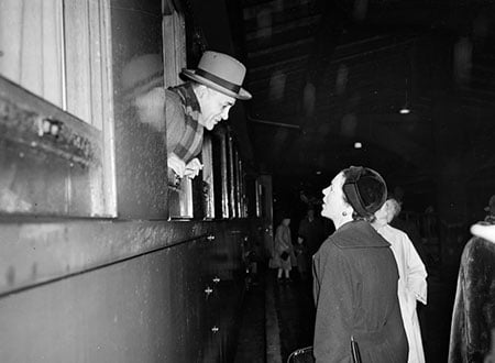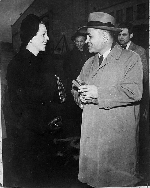 1 (of 4) Ralph Bunche arriving in Stockholm, Sweden, a few days after the Nobel Peace Prize award ceremony in Oslo, Norway. Photo taken on 15 December 1950 at the Central station in Stockholm.