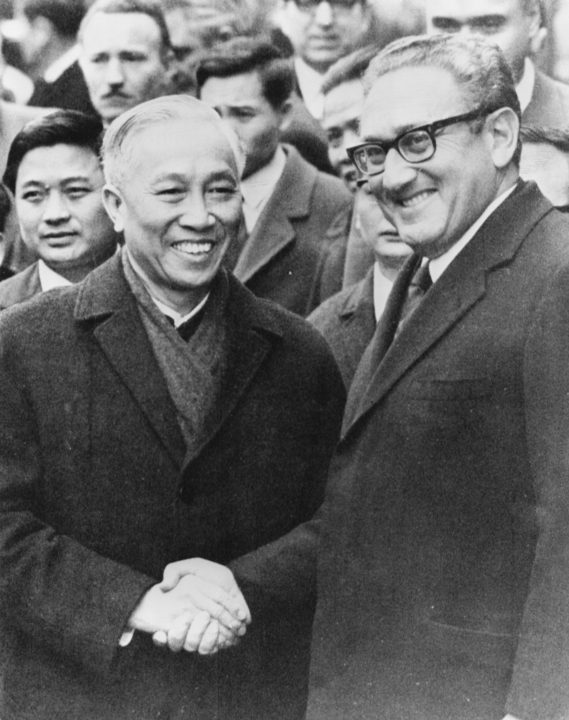 Le Duc Tho and Henry Kissinger during peace talks on the Vietnam War in Paris, France, on 24 January 1973.