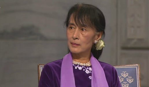 Aung San Suu Kyi delivering her Nobel Lecture at the Oslo City Hall, Norway, on 16 June 2012.