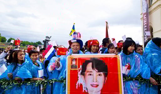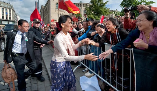 Aung San Suu Kyi on her way out from the Nobel Peace Center in Oslo, Norway, to the Oslo City Hall where 12,000 people were waiting to greet her.