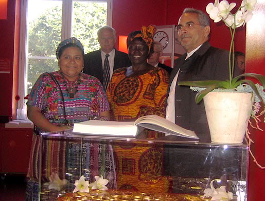 7 (of 14) Three Nobel Peace Prize Laureates waiting to sign the guest book during their visit to the Nobel Peace Center in September 2006 (from left: Rigoberta Menchú Tum, Wangari Maathai and José Ramos-Horta).