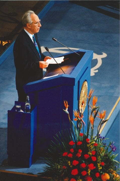 2 (of 8) Shimon Peres delivering his Nobel Prize lecture at the Nobel Peace Prize award ceremony 10 December 1994.