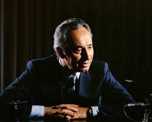 6 (of 8) Shimon Peres during a press conference at the Norwegian Nobel Institute, December 1994.
