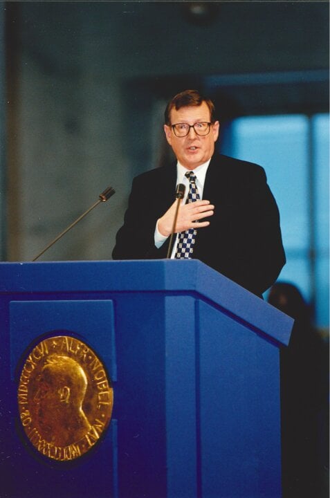3 (of 7) David Trimble delivering his Nobel Peace Prize lecture at the award ceremony at Oslo City Hall on 10 December 1998.