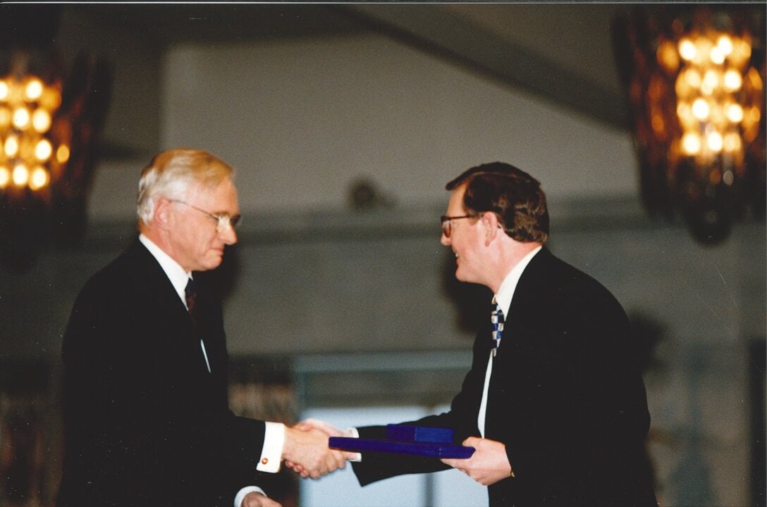 1 (of 7) David Trimble receiving his Nobel Peace Prize from Francis Sejersted, Chairman of the Norwegian Nobel Committee, at the award ceremony at Oslo City Hall on 10 December 1998.