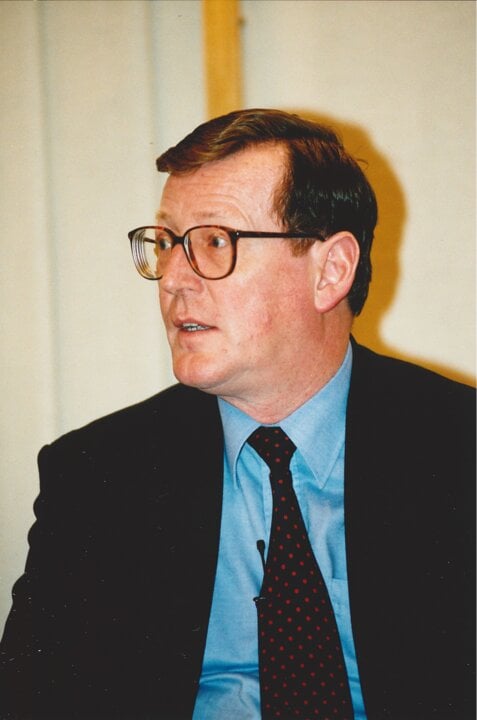 David Trimble during a press conference at the Norwegian Nobel Institute, December 1998.