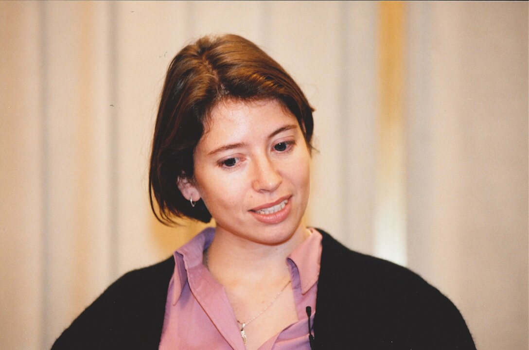 9 (of 10) Dr. Marie-Eve Raguenaud, Médecins Sans Frontières, during a press conference at the Norwegian Nobel Institute, December 1999.