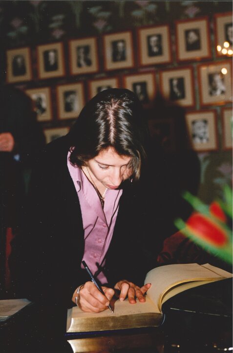 7 (of 10) Dr. Marie-Eve Raguenaud, Médecins Sans Frontières, signing the guest book during her visit to the Norwegian Nobel Institute, December 1999.