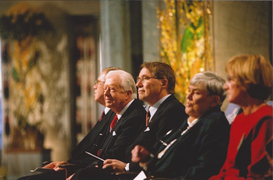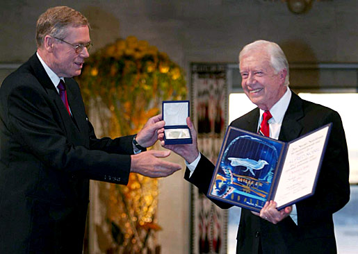 1 (of 8) Jimmy Carter receiving his Nobel Peace Prize from Gunnar Berge, Chairman of the Norwegian Nobel Committee (left).