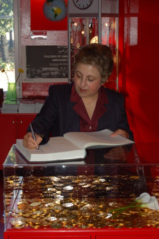 Shirin Ebadi signing the guest book at the Nobel Peace Center in October 2006.