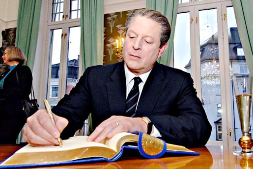 Al Gore signing the guest book at the Norwegian Nobel Institute.