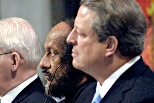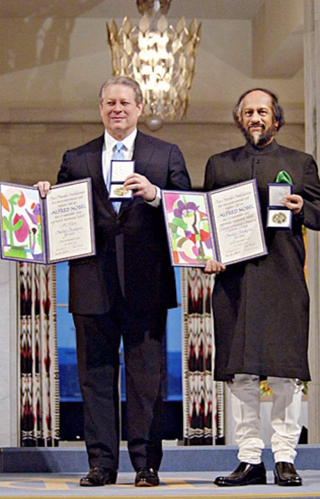 Rajendra K. Pachauri, Chairman of the Intergovernmental Panel on Climate Change (IPCC) with their Nobel Peace