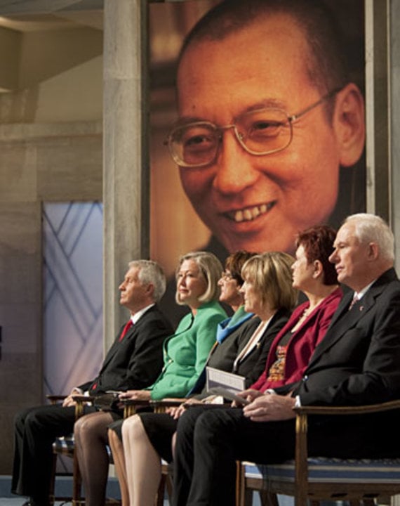 2 (of 7) Thorbjørn Jagland (left) and the Norwegian Nobel Committee at the Nobel Peace Prize Award Ceremony in Oslo, Norway, 10 December 2010.