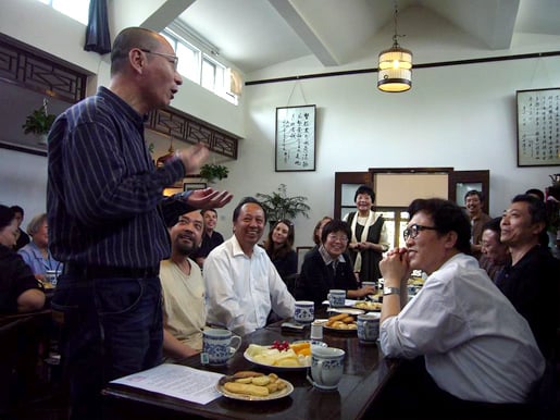 4 (of 7) Liu Xiaobo speaking at a weekend forum at Sanwei Book House, Beijing, China. Photo taken 13 May, 2008.