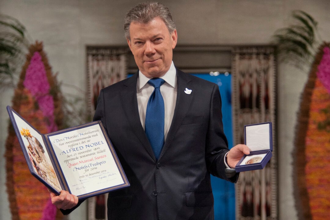 1 (of 9) Juan Manuel Santos with his Nobel Prize medal and diploma at the Nobel Peace Prize award ceremony at the Oslo City Hall in Norway, 10 December 2016.