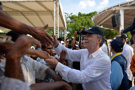 9 (of 9) The inhabitants of Algarrobo, Magdalena, welcome President Juan Manuel Santos, who was there in conjunction with assistance for hurricane Matthew on 6 October 2016.