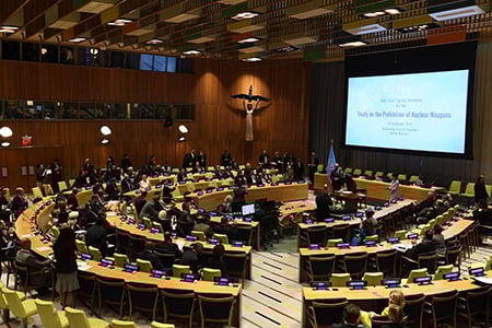 Signing ceremony for the UN Treaty on the Prohibition of Nuclear Weapons at the United Nations Headquarters, New York, 20 September 2017.