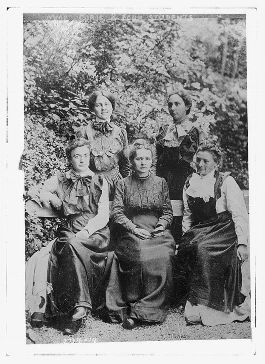 Marie Curie and four of her students. (Photo taken between 1910 and 1915.)