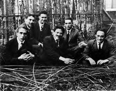 4 (of 4) Ehrenfest's students, Leiden 1924. Left to right: Gerhard Heinrich Dieke, Samuel Abraham Goudsmit, Jan Tinbergen, Paul Ehrenfest, Ralph Kronig, and Enrico Fermi.
