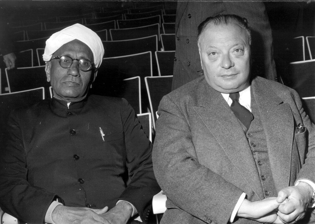 1 (of 5) Physics laureates Sir Chandrasekhara Venkata Raman (left) and Wolfgang Pauli (right) at the 6th Nobel Laureate meeting in Lindau, June 1956.